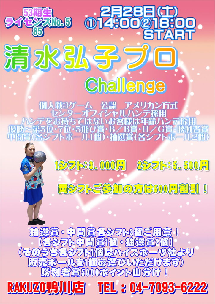 清水 弘子プロチャレンジ開催のお知らせ!!